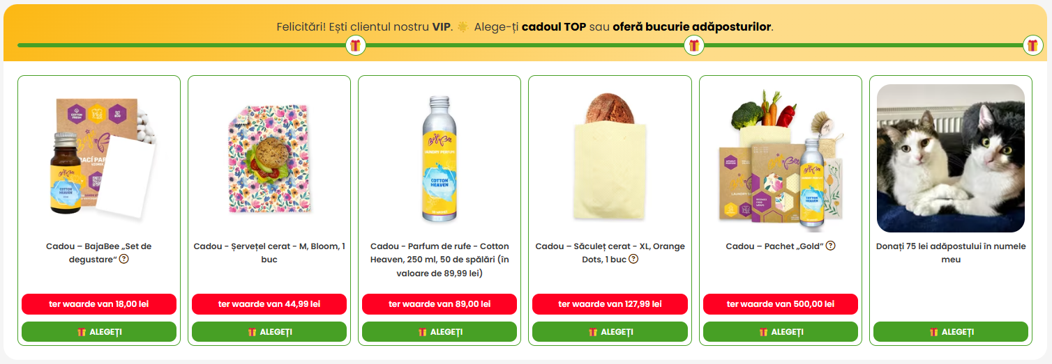 Adăugați produse în coș și urmăriți cum cadourile se deblochează treptat.
